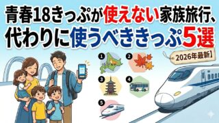 2026年の青春18きっぷ新ルールで家族シェアが完全廃止。大人2人+子ども2人の旅行費は最大4倍に。本記事では新旧ルールの損益を実額で比較し、家族旅行に使えるフリーきっぷ5選をわかりやすく解説します。